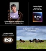 - Fotografía y videografía avanzadas: Captura momentos inolvidables con la cámara profesional de 48 Mpx, que ofrece opciones de vídeo 4K Dolby Vision y el versátil modo Cine.